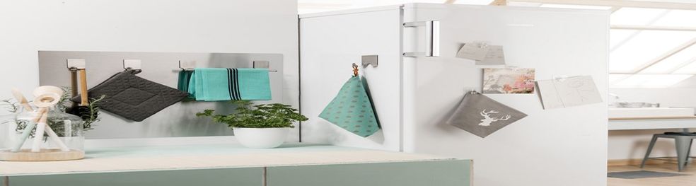Comodo per appendere le presine e i canovacci sulle pareti del frigorifero o qualsiasi superficie metallica, i ganci "Magnet" sono in acciaio inox