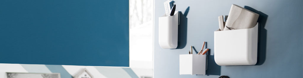 Sviluppato da Compactor, ecco un nuovo sistema di organizzazione autoadesiva che permette di sfruttare la superficie della parete tenendo libero il piano di lavoro e avendo a portata di mano i piccoli oggetti di uso quotidiano. Un bel modo per ravvivare le pareti senza danneggiarle!
